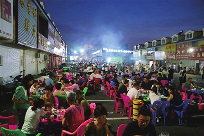 “百年烟火气 醉享王哥庄”王哥庄百年大集海鲜烧烤夜市位于王哥庄农贸市场,利客来超市南门,邻近去年刚升级完成的王哥庄海鲜市场。据悉,前期肯德基、蜜雪冰城等餐饮连锁店刚刚在这里落户开业。夜市现场设置了烧烤啤酒、潮品集市、亲子乐园以及主舞台四个区域。夜市烧烤区共设150桌,拥有独立厨房,可满足600余人同时就餐。据了解,开市当晚,售出3万余只烤肉,近1吨啤酒,客流量达2万人次,实现营业额10万余元,实现了近三年以来王哥庄单晚夜间餐饮游玩项目纳客最高纪录。