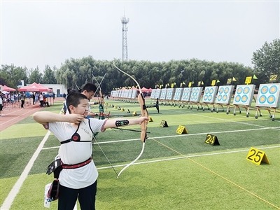 本报7月9日讯 7月8日—9日,2023年青岛市第六届体育大会“上合·铺集杯”射箭比赛在澄月湖畔的胶州市铺集小学举行,吸引来自青岛中小学和射箭俱乐部等共20个代表队200余名运动员齐聚澄月湖畔,弯弓搭箭一较高下。