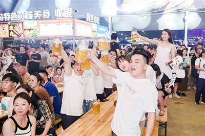 为了让广大市民游客“乘兴而来、满载而归”,金沙滩啤酒城里设有多处购物消费区域。其中,国际啤酒汇超市,面积300平方米,汇集德国、比利时、加拿大、丹麦等20余个国家和地区500余款品牌啤酒;HI购跨境电商免关税商城,面积120平方米,提供2000余款全球优质商品;黄五箱进口网红仓,面积1250平方米,平价零售5000余种酒水、食品、日用品。