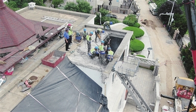 “拆除砖混违建,都是用电镐,但有业主反映噪音太大,而且担心影响房屋质量。我们就改用压钳作业,没有噪音,对房屋也没有影响。”现场施工负责人告诉记者,一个班组12-15人,边拆除边垃圾清运,大概一周左右时间可以拆完一栋别墅约20平方米的砖混违建。考虑到小区目前正在铺设暖气管道,他们卡点施工,大型吊车、垃圾清运车和暖气管道铺设错开时间,不占业主车位,三餐时间不施工,尽量做到不影响小区管理和业主生活。