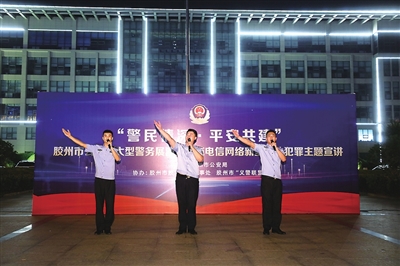 本报7月17日讯 缉毒犬现场展示缉毒、节奏拉满的Rap,琳琅满目的特战装备……7月13日晚,胶州市胶北文化广场上热闹非凡:胶州市公安局举办了“警民情深·平安共建”大型警务展演暨反电诈主题宣讲首场活动。