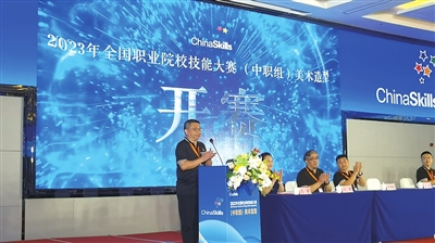 全国职业院校技能大赛(中职组)美术造型赛项执委会副主任帅斌宣布大赛开赛。 于娜 摄