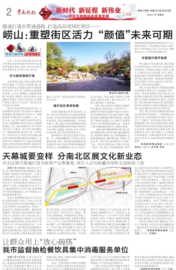 崂山区城市管理局不断提高道路保洁精细化管理水平,创建城市客厅、世纪广场等深度保洁示范区域3处,深度保洁示范路2条;持续开展公厕提质增量行动,更换完善城市客厅厕具,完善前海一线公厕如厕分流指示牌,提高厕位使用率;新建浮山森林公园配套公厕9座;全面实施生活垃圾分类引领行动。
