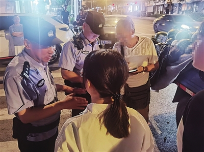 当晚10时许,台东派出所110民警韩林从对讲机内接到指令:台东一路芙蓉路路口有一起纠纷需要处理。“现在车多人多,开车过去还得绕路,咱们快走几步赶过去!”韩林和同事快步来到现场,得知报警的女青年在购买西瓜时,怀疑小贩的电子秤铅封有问题,晚上联系不上其他部门,只能打110反映。韩林劝说女青年,电子秤的铅封问题要向市场监管反映,要有真凭实据;韩林同时告诉小贩,占道经营妨碍车辆通行,是绝对不允许的。经过劝说,双方都表示理解。