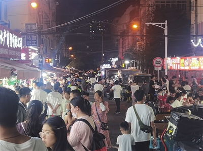 晚9时许,营口路啤酒街十分热闹,桌靠着桌,菜挨着菜,人声鼎沸。在这里,市北分局合成作战中心、巡逻警察大队等警种的民警联合驻守,几乎每一个路口都有民警在执勤。“每天凌晨两点前,在台东八路及营口路周边,都有我们的巡防警力。”巡逻警察大队民警告诉记者,他们每天增派10人支援台东派出所,加强对步行街、营口路的巡防力度,提高商圈街面见警率。