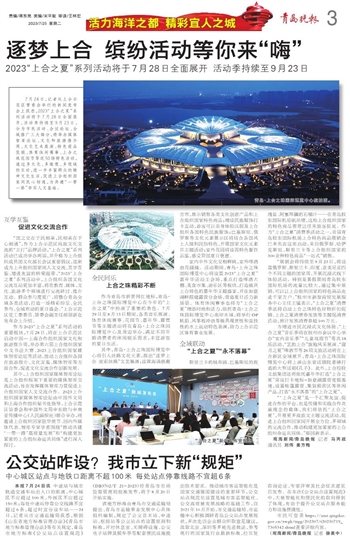 “国之交在于民相亲,民相亲在于心相通”,作为上合示范区商旅文化交流的“主打”品牌活动,“上合之夏”系列活动已成功举办两届,并升格为上合组织成员国文化部长会议重要倡议,逐渐成为上合组织国家间人文交流、互学互鉴、增进友谊的桥梁纽带。“2023‘上合之夏’系列活动中,上合组织各国文化交流互动更加丰富,将在教育、媒体、文化、旅游多个领域进行交流研讨、推介互动。群众参与度更广,将整合青岛全域各类活动,打造一场精彩纷呈、全民参与、全城欢动的夏日盛会。”上合示范区党工委委员、管委会副主任郝国新在发布会上介绍。