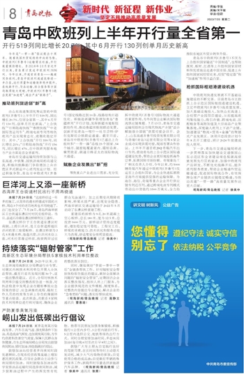 下一步,青岛市交通运输局将进一步贯彻落实加快建设交通强国山东示范区和全省建设绿色低碳高质量发展先行区的要求,加强中欧班列产品研发,不断优化线路开拓,提升班列服务质量,帮助企业畅通外贸运输通道,促进国际物流合作,有效保障全球产业链供应链稳定畅通,为推动共建“一带一路”高质量发展作出更大贡献。