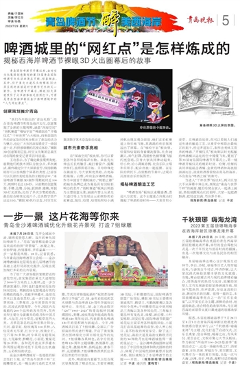 “我们今年推出的‘青岛礼物’,结合青岛啤酒节和青岛海洋文化,创意策划了全新的主题视频,涵盖‘深海空间’‘扬帆赛道’‘嘻哈宇宙’‘啤酒农场’‘开桶仪式’‘干杯世界’六大板块,向来自国内外的游客及市民充分展示了青岛的活力与魅力,也让广大市民游客感受了一场创意十足、科技感爆棚的沉浸式体验。”裸眼3D创意策划总监、时空文化集团总裁王功在现场接受记者采访时说道。