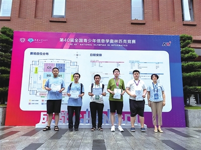 本报7月28日讯 7月27日,在成都七中举行的第40届全国青少年信息学奥林匹克竞赛中,经过两天、每天长达5个小时的编程比赛,青岛二中信竞队的崔博钧和王亦木奋力拼搏,摘得两枚银牌并获得清北强基计划破格录取的资格。另外,杨景皓、倪润东、骆雨霄三位同学以竞赛夏令营D类资格同时也参加了本次比赛并都喜获铜牌。