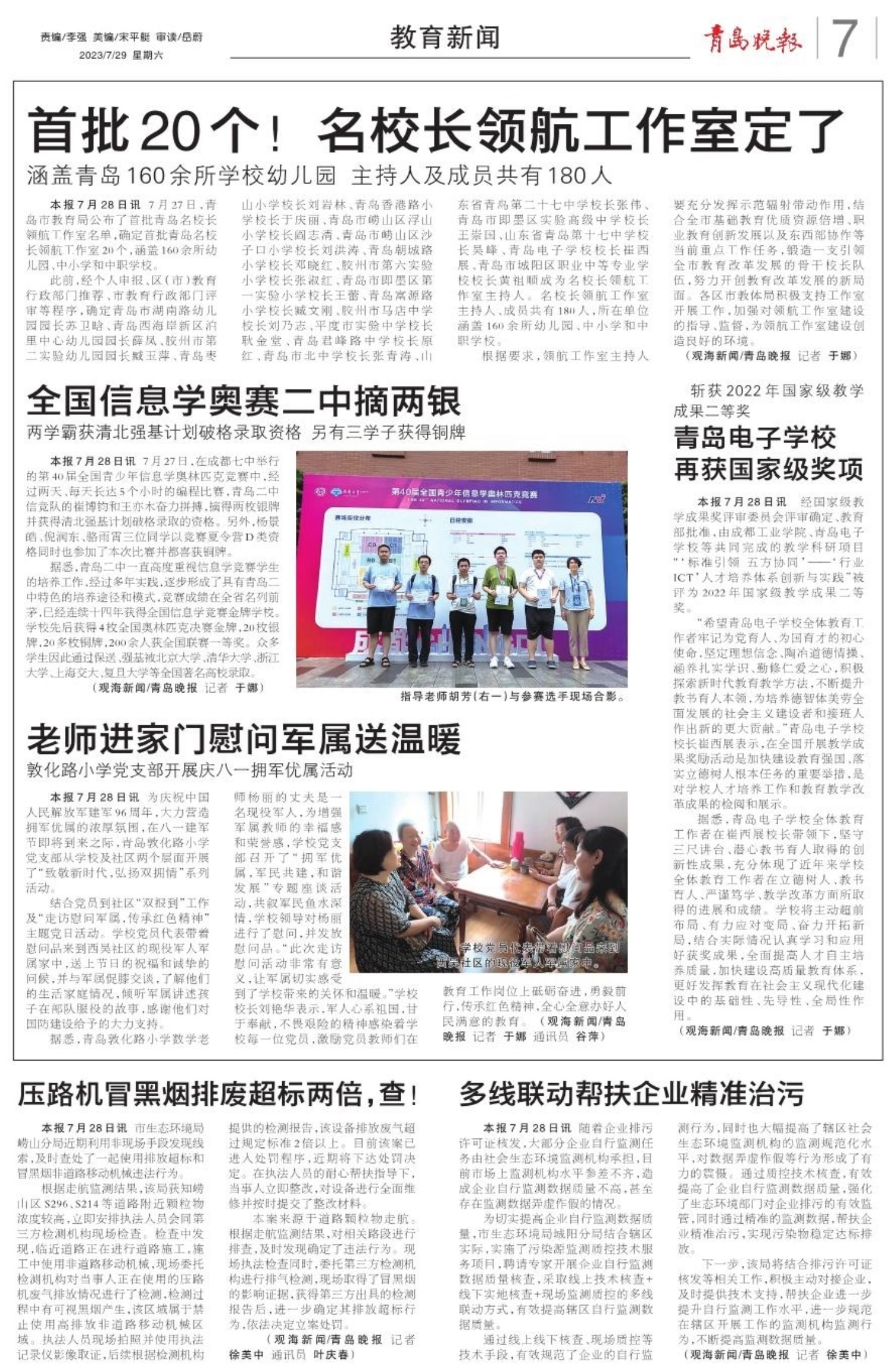 A01 头版 A02 新时代 新征程 新伟业 A03 视点 A04 城市更新建设 让生活更美好 A05 青岛啤酒节 醉美西海岸 A06 城事 A07 教育新闻 A08 人物故事 A09 城事 A10 作文课 A11 慢读 A12 开卷
