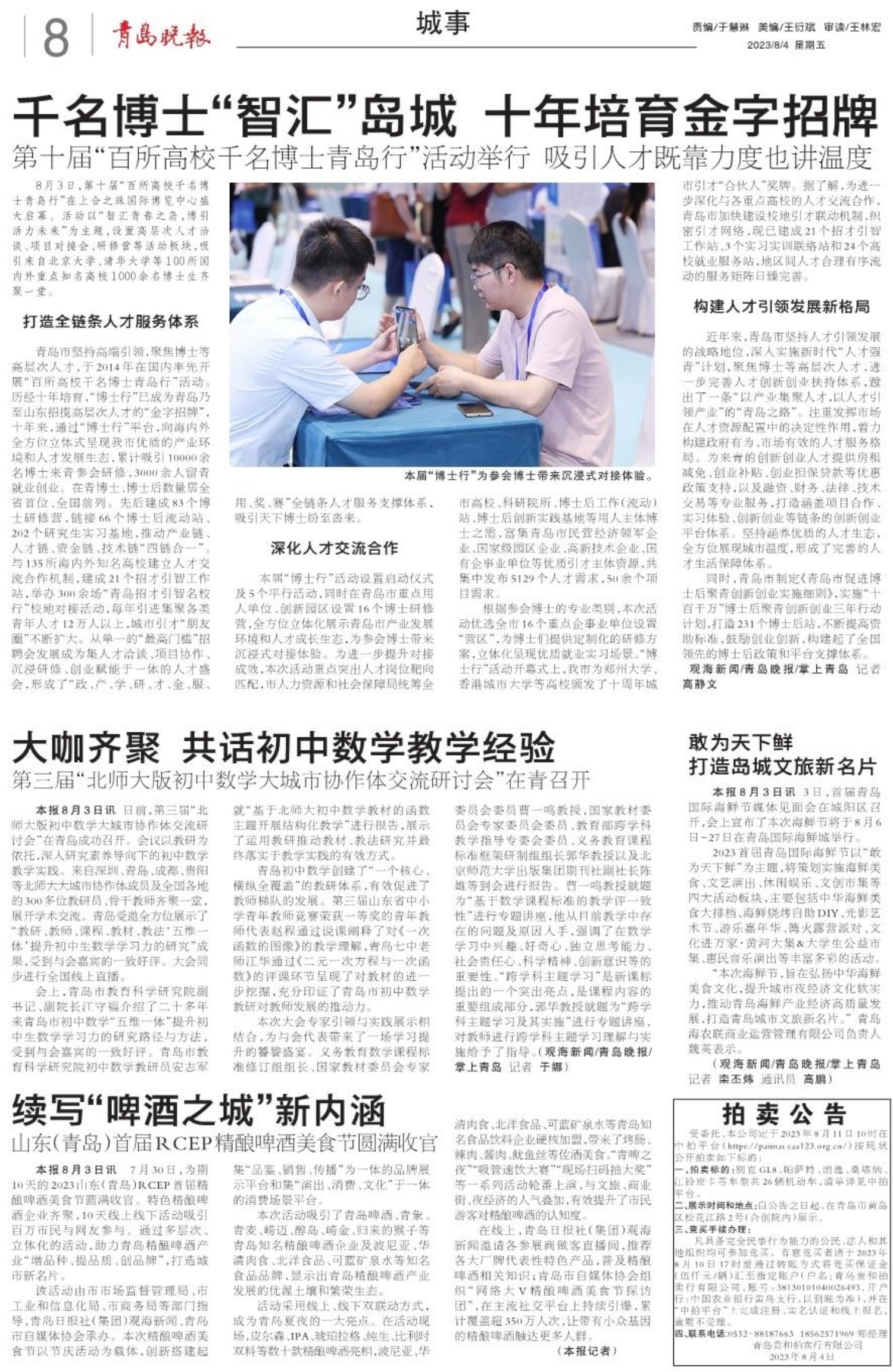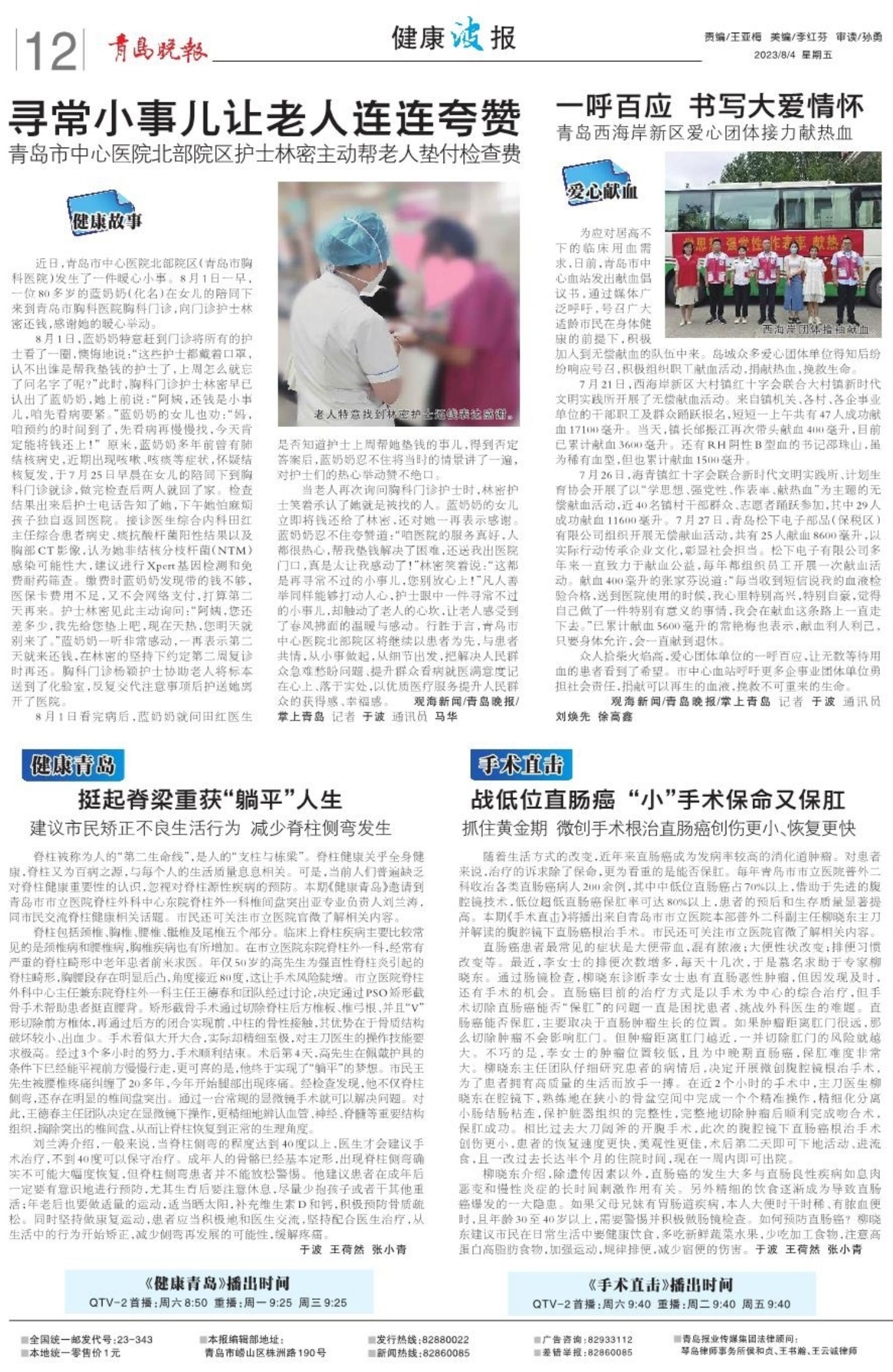 A01 头版 A02 新时代 新征程 新伟业 A03 打造乡村振兴齐鲁样板 A04 人物故事 A05 城市更新建设 让生活更美好 A06 火热的一线 A07 青岛啤酒节 醉美西海岸 A08 城事 A09 火热的一线 A10 民生新闻 A11 生活周刊 A12 健康波报