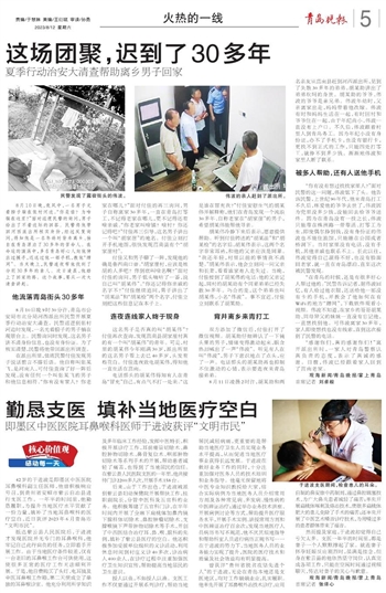 8月10日晚,夜风中,一名男子光着膀子躺在张村河边。“你是谁?为啥躺在这里?”面对巡逻民警的询问,男子给出了不着边际的回答。民警将他带回河西派出所核实身份,经过反复询问,得知他是一名年幼时背井离乡、独自在青岛漂泊了30多年的苦命人。在命运的漩涡中,多名青岛好心人向他伸出过援手,还送过他一部手机,教他“蹭网”。当天晚上,民警连夜帮他找到了分别30多年的亲人。次日凌晨,他踏上了回家的路。这个故事,要从一次大清查讲起。