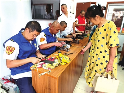 本报8月11日讯 11日上午9时左右,应“信新相映”和辽源路街道伊春二路社区的邀请,公交隧道三分、五分、八分公司和崂山巴士第三分公司志愿团队的数十名志愿者们,顶着酷暑来到伊春二路社区为居民提供免费磨刀、爱心理发、维修小家电、穿马扎等多项志愿服务,多样项目与丰富内容让居民们应接不暇。