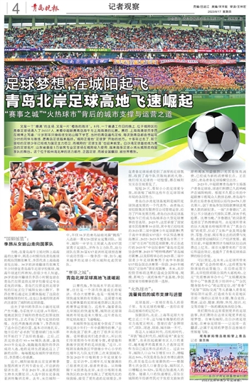 近日,城阳姑娘袁丛官宣新赛季加盟西班牙巴列卡诺女足,开启新的留洋生涯。早在2021年,袁丛就得到主帅水庆霞征召,入选中国女足备战亚洲杯集训名单。去年,来自城阳一中,年仅16岁的青岛姑娘刘晨“跳级”入选新一期U20国家女足集训队。同年,城阳一中学生王昊斌入选U17国家男子足球队,并作为主力队员,助力球队在第20届U17亚洲杯足球预选赛中成功晋级……像李昂一样,如今,越来越多的足球小将从城阳走进国家队。