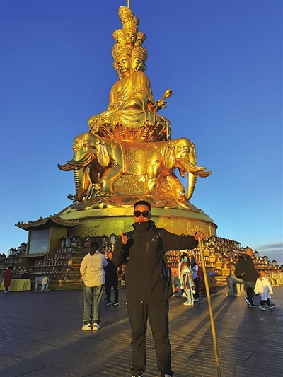 在他看来,自己此行虽然行程紧凑,但并没有流于“打卡”这一形式,每到一处都会用心感受山水之美。“很多人爬山索道上索道下,可能就丢失了徒步线路的部分美景。我一般都是选择徒步上去,欣赏沿路而上的风景,再坐索道下来,可以感受索道上不同视角的风景。”