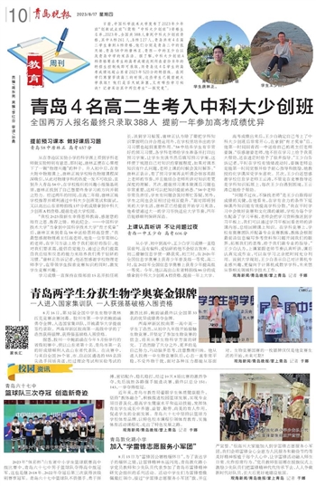 日前,中国科学技术大学发布了2023年少年班“创新试点班”(简称 “中科大少创班”)资格生名单,2023年,全国共388人拿到中科大少创班资格,其中A档261人,B档127人,青岛共有4名高二学生拿到A档资格,他们分别是青岛二中的张天赫、青岛58中的唐林正、青西一中的王少白以及青岛中学的宋昌浩。据了解,中科大少创班A档资格要求考生的高考成绩达到所在省份当年的特招生控制线即可录取,而青岛这4名学生的高考成绩远超山东省2023年520分的特招线。在同学们寒窗苦读高三的时候,这些学生已提前被大学录取!他们是否天赋异禀,又有哪些学习秘诀?记者采访其中两位考生“一探究竟”。