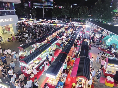 热闹的李村商圈乐客城夜市。 崔闻芳 摄
