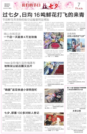本报8月22日讯 鲜花是节日不可缺少的装饰。记者从青岛机场集团获悉,8月14日至8月21日青岛机场物流公司共保障鲜花运输42架次,平均每日保障6架次,共16.13吨,同比此前一周增加10.23吨,增长率超过157%。货物始发站主要以昆明为主,覆盖广州、深圳、成都、贵阳等大型城市。