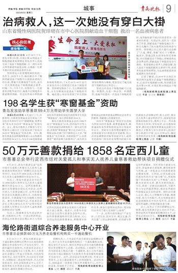 8月20日,青岛市慈善总会“定西市结对关爱孤儿和事实无人抚养儿童慈善救助帮扶项目”捐赠仪式在定西市举行,为定西市1858名孤儿和事实无人抚养儿童捐赠项目资金50万元。