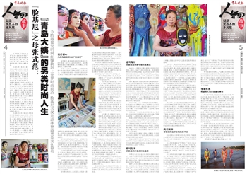 无论从哪个角度来看,青岛大姨张式范都与时尚毫不沾边。身着红色的印花真丝短袖和棕色亚麻长裤,说起话来和风细雨,亲切得就像邻居家的阿姨。但就是这样一位普通到不能再普通的青岛大姨,却在由欧美知名品牌占据绝对话语权的时尚圈,掀起了一股新风潮。她设计的脸基尼不仅登上了巴黎、纽约等国际时装周,连时尚明星蕾哈娜也戴上拍摄大片。脸基尼不仅是爆火的时尚单品,更成为了代表中国的文化符号。时尚人士们大概不会想到,脸基尼设计的初心是为了让洗海澡的青岛大姨不会被海蜇蜇伤。