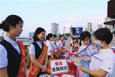 金融惠民、文艺拥军。8月25日晚,一场精彩的文艺演出在青岛新晋网红打卡地、有着最美日落广场之称的金茂湾广场举行。本次“公益进社区 老少同乐会”活动由青岛银保监局、青岛市民政局、青岛市退役军人事务局、青岛日报报业集团、青岛市银行业协会、青岛市金融消费权益保护协会、云南路街道办事处联合主办,青岛晚报、青岛掌控传媒共同承办。活动现场,来自青岛多家金融机构的工作人员一对一向社区居民普及金融知识,帮助他们制定最精准的金融方案,也现场识破各类金融骗局。