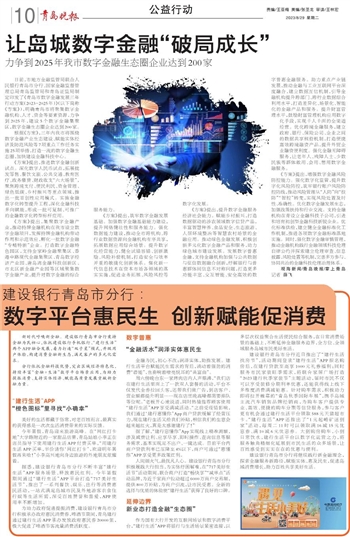 新时代呼唤新金融。建设银行青岛市分行秉持金融为民初心,依托建设银行手机银行、“建行生活”两个APP融合发展,着力打造“双子星”模式,升级用户体验,构建消费金融新生态,满足客户的多元化需求。