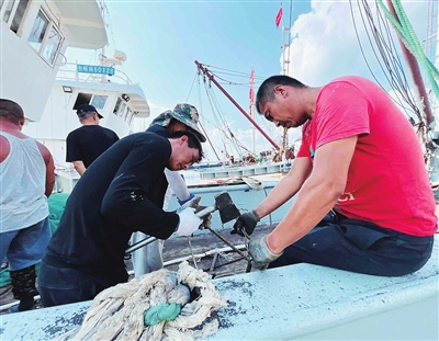 昨天下午,记者在沙子口中心渔港看到,部分渔船正在做最后的准备工作。