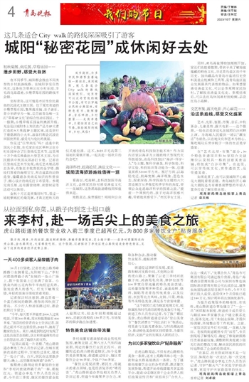假期虎山路周边很多餐馆的生意和“李村河底烧烤戳子肉”一样,都挺红火。街道办事处工作人员告诉记者,今年前三季度,辖区的餐饮营业收入超两亿元,较去年同期增幅超过46%,贡献区级税收130多万元,市场复苏的脚步跑出加速度。