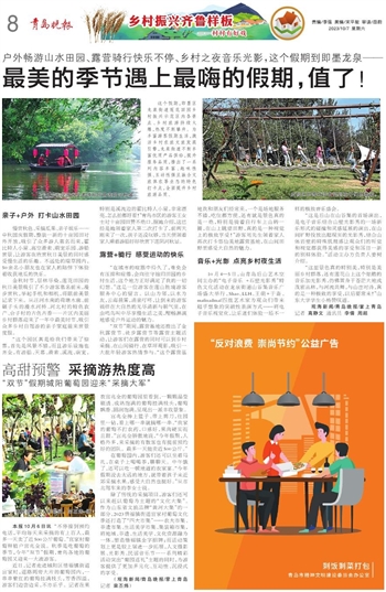 这个假期,即墨区龙泉街道莲花田园乡村振兴示范区内各景点、乡村旅游持续火爆,热度不断攀升。为丰富游客假期生活,激活乡村农旅文旅发展引擎,龙泉街道不断丰富优质产品供给,提升服务品质,推出了一系列内容丰富、趣味性强、互动性强且融合文旅体农等业态的特色打卡点,全面提升乡村旅游品质。