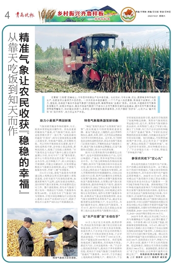 自6月1日起,麦收气象服务专班便通过线上视频会议形式及时通报小麦收获进度,分析当前天气对麦收的影响,如遇高影响天气过程,适时加密会商频次,及时研判气象灾害影响,科学部署防范应对工作。整个麦收期间,青岛市气象部门累计发布一周滚动天气预报、气象服务专报等145期。正是因为有了气象部门的专项服务,平度市绿色增粮先行示范区核心基地小麦亩产达到837.2公斤,刷新了青岛市小麦单产823.2公斤的最高纪录。