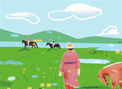 部日固德操着原生态口音,说——黄河“几”字弯,怀抱鄂尔多斯。大地生机盎然,沃野千里染绿。每当雨季到来,鄂托克旗乌兰乌素草原天蓝草绿,到处可见忙忙碌碌的身影,一幅人与自然和谐共生的美丽画卷徐徐展开。部日固德在城里从事文化工作,吃“国家饭”,他的哥哥和父亲则一直留在鄂托克草原,以养“五畜”为荣,五畜即绵羊、山羊、牛、马和骆驼。哥哥家里养着四五头骆驼,还养着50匹马,300多只山羊、绵羊,12头牛。“现在牧区水电暖路讯齐全,牧民的生活品质赶上城里人了!”