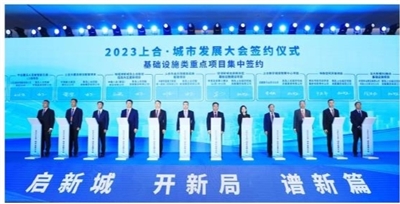 融入大势,上合示范区再一次登高远行,在新征程上迈出坚实步伐。10月30日,“启新城、开新局、谱新篇”2023上合·城市发展大会在青岛·上合之珠国际博览中心举行。现场,上合示范区“五大新城”新架构正式发布,上合国际城、空港新城、枢纽港新城、卡奥斯新城、板桥新城通过组团式布局,进一步实现新突破、展现新作为。同时,上合示范区发布“2024年百强投资项目”,国家级智库机构以及金融支持、产业投资、基础设施、“一镇(街道)一业”等五类共计55个重点项目集中签约。