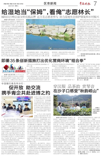 城阳区地处青岛胶州湾北岸,域内有崂山西麓葳蕤的森林,林地约有13018.96公顷,白沙河、墨水河等六水绕城的湿地,还有胶州湾入海口的滩涂,湿地面积约15623.380公顷。广袤的湿地既是万物生灵的家园,也是孩子们接触自然、认识自然的乐园,在“志愿林长”经验助力下,城阳区中小学生保护湿地的实践也走在全国前列。依托湿地资源开展生态教育活动已近10年,建成了12所以湿地生物多样性教育为特色的学校,居全国区县首位,记录自然底色和志愿林长开展的科普教育、保护行动的生物多样性宣传视频《青岛生命周记》已播出98期。