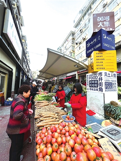 在本次活动中,浮山所室外“四九大集”与室内常态化摊位相结合,独具市南特色的青岛贝雕、孙氏沉香等手造、非遗产品,胶州大白菜、平度尖叫萝卜、莱西丑梨等优质农产品,生蚝、海鱼、梭子蟹等本地生鲜,以及港味烧腊、台西大包、啤酒烧烤等特色小吃美食,应有尽有,唤醒了老青岛的乡愁记忆,也刷新了年轻人对大集的认识,依托“黄河大集”,升级改造后的浮山所市集又拉动一波新流量。