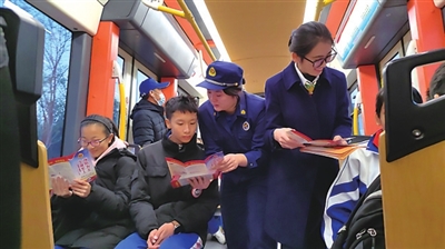 本报11月17日讯 为全力落实消防宣传月期间安全教育工作,进一步提高广大学生乘客消防安全意识和自救互救能力,11月15日,青岛市城阳区消防救援大队联合青岛城运控股集团轨道巴士公司志愿者在“锦绣前程——勤学专列”有轨电车车厢开展消防安全知识宣讲。