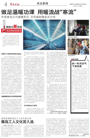 “接下来几天,青岛面临大风、降温甚至雨雪,各方都要做足准备,考验我们的时候到了。”“气温越低、风雪越大,百姓对高质量供热的需求越迫切,各车间部室必须高度重视,特护巡检、防寒防冻等多方面工作必须执行到位。”22日,华电青岛公司召开应对寒潮保供专题会议,对加强设备运维管理、全面排查消除防冻伴热系统隐患、加强防冻伴热系统巡检维护、加强冻煤接卸和上煤管理等各项工作进行再部署、再强调,全面迎接今冬供热季的第一波寒流考验。