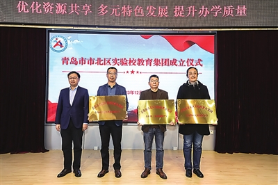 本报12月1日讯 为进一步深化基础教育综合改革,创新办学模式,扩大市北区基础教育均衡化、优质化发展成果,打造中西部优质教育新高地,12月1日,由青岛第二实验初级中学、青岛第四实验初级中学、青岛市市北区实验初级中学3所学校组成的青岛市市北区实验校教育集团正式成立。