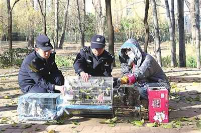本报12月1日讯 12月1日,胶州市公安局会同多部门在胶州市植物园举办野生鸟类集中放飞活动,让扣押的100余只野生鸟类重新回归自然。