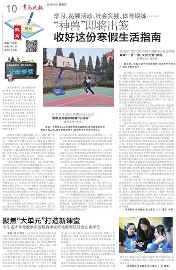 第二,利用网上的资源进行线上学习。比如青岛教育e平台、哔哩哔哩网站等都有很多学习资源,“平时上学没有那么多时间上网,基本学的都是课内知识,同学们可以利用寒假的时间,通过网上深度学习的课程,去开阔视野和开拓思路。”