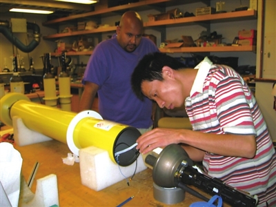 2008年,刘增宏在美国华盛顿大学学习浮标装配。