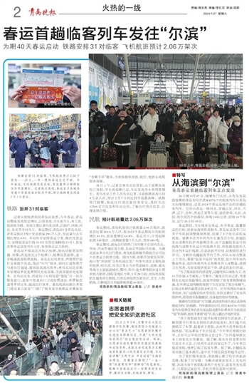 “孩子放假前我们就开始规划到哈尔滨旅游,了解到要开行青岛北到哈尔滨的临客时,我们毫不犹豫购买了车票,趁着孩子放假,去冰雪大世界体验冰城热情。”临客乘客于先生说道。“今年单位放假比较早,正好可以早些回家陪父母过年。”在西海岸新区务工的张先生笑着说。据了解,张先生的老家在哈尔滨市木兰县,已经两年没有回家过年了,今年单位提前放假,他便订购了临客车票。据了解,首趟临客首站就已基本满员,途中在个别区段还将超员运行。