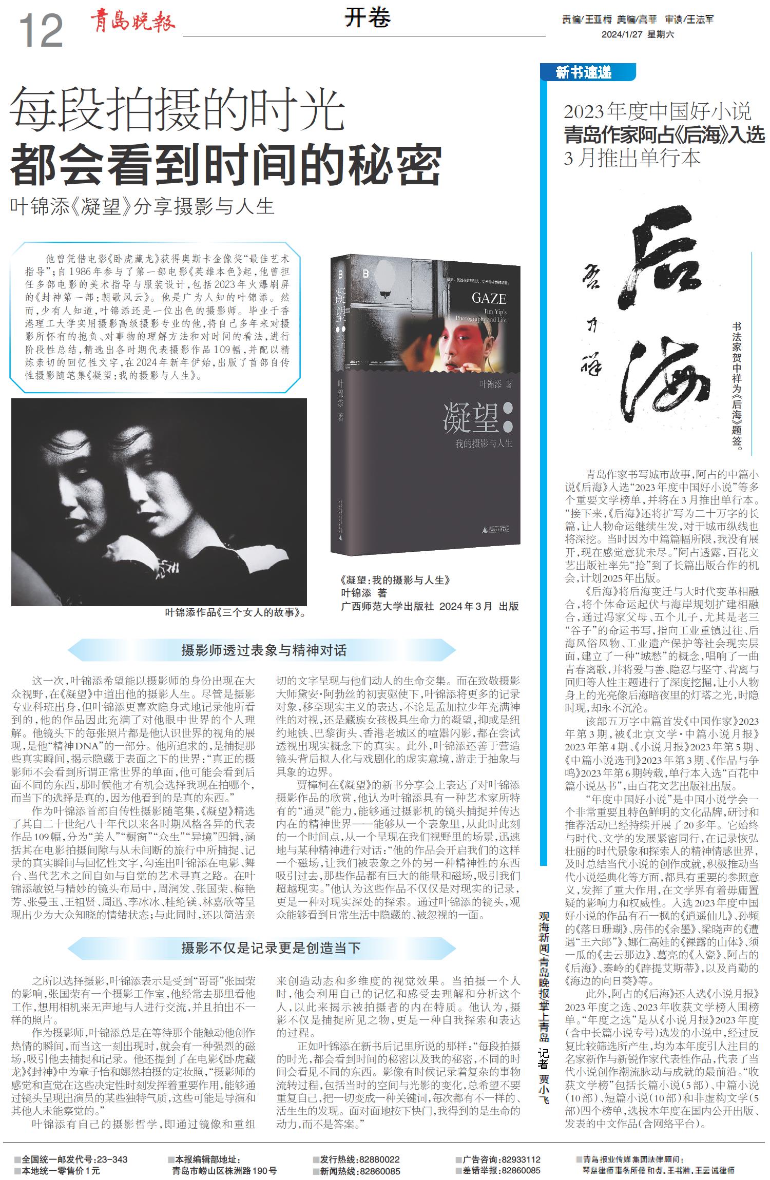 2023年度中国好小说青岛作家阿占《后海》入选3月推出单行本
