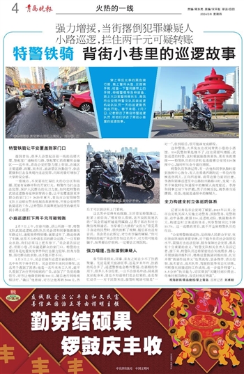 2月7日上午,在徐州路、浮山所路一带,特警支队武装巡逻机动队队员吴会君和同事骑着摩托车路过时,速度放得特别慢:就要过年了,路边停满了车辆,还有不少拎着东西的群众过路。“一旦有群众求助,我们必须马上把车停下。”吴会君告诉记者,背街小巷,其实就是群众的家门口。特警的主要任务是处置突发事件和打击暴力犯罪,但身为警察,面对群众的求助,决不能不管不问。