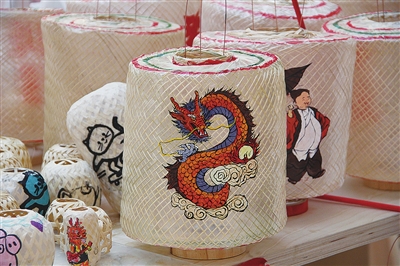 青岛姑娘王珮琦在潮汕油纸灯笼上手绘龙。