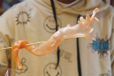 市非遗传承人吹糖艺人周明鸣吹的糖龙。 韩云龙 摄