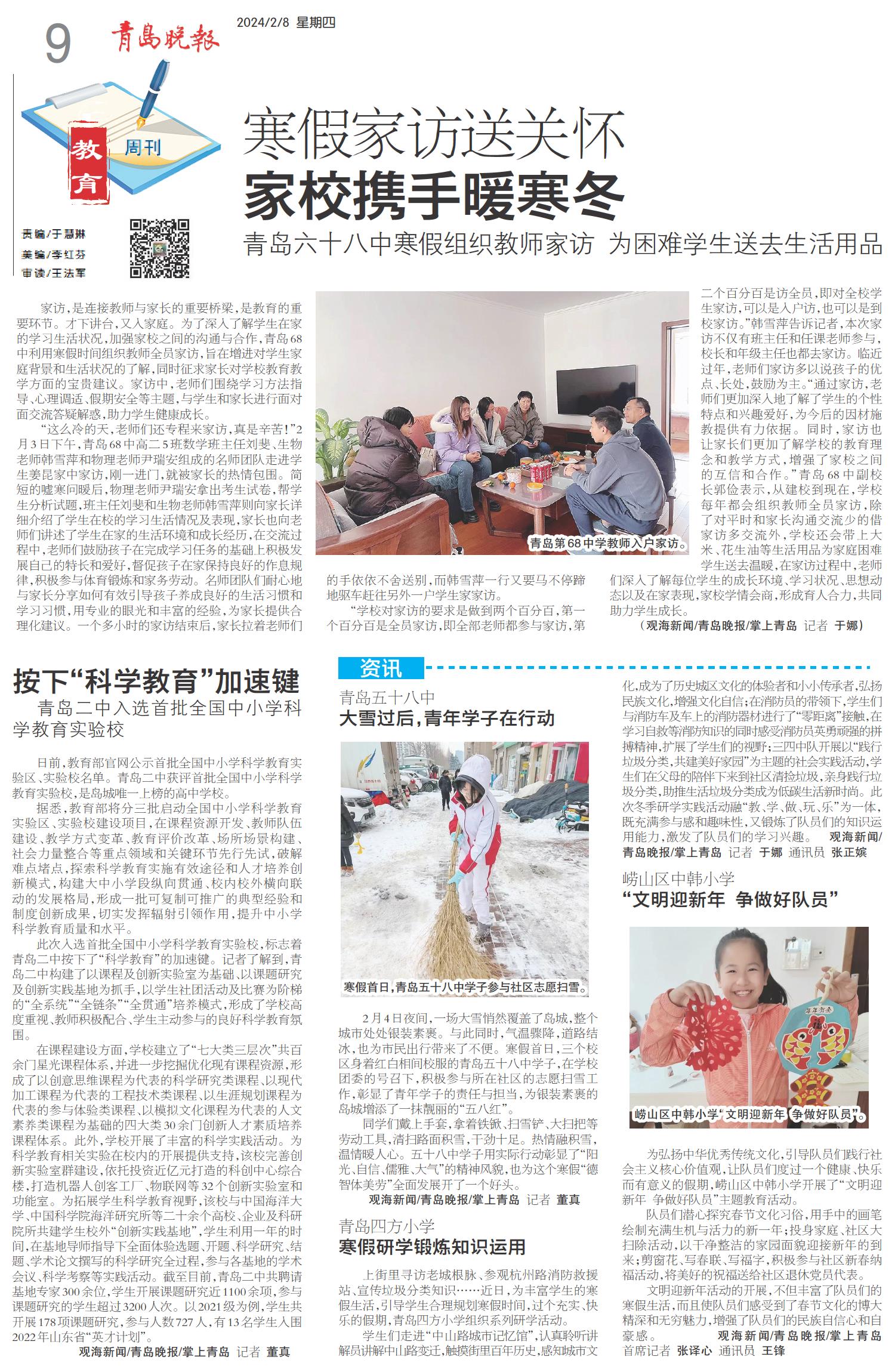 寒假家访送关怀 家校携手暖寒冬