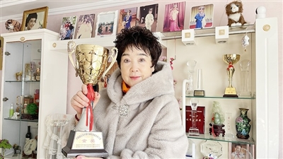 张梅香手捧荣誉奖杯。