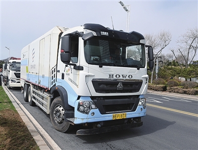 正值春季,工人师傅在整理绿化带,添加开花绿植,过程中难免把泥土带到马路上。块头像集装箱车辆一样的深度保洁车驶过后,记者上手一摸柏油马路,指头不沾一丝灰尘,干干净净。“这台海山保洁车,车身长度达9.2米,整备质量达14吨,可有效对道路积垢、板结、油污等污染物进行清除,而且该车辆的风机吹的是热风,清扫完的路面呈现较干的状态,避免二次污染。”市南城发公司车辆保障部副主任周锋告诉记者。