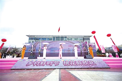“花映上合‘桃’醉胶北”桃花季开幕式现场。