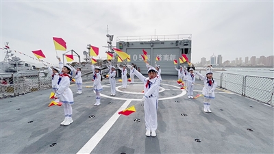 “驱逐舰是一种多用途的军舰,主要任务是护航、侦察、布雷、袭击岸上目标等。”登上济南舰,凌树林向同学们介绍了这一国家一级文物,并分享了自己两次参加索马里护航任务的经历,其中,最长的一次航行历时216天。据了解,凌树林1987年入伍,先后在驱逐舰106舰、112舰服役,曾出访过20多个国家,荣立二等功1次、三等功3次。